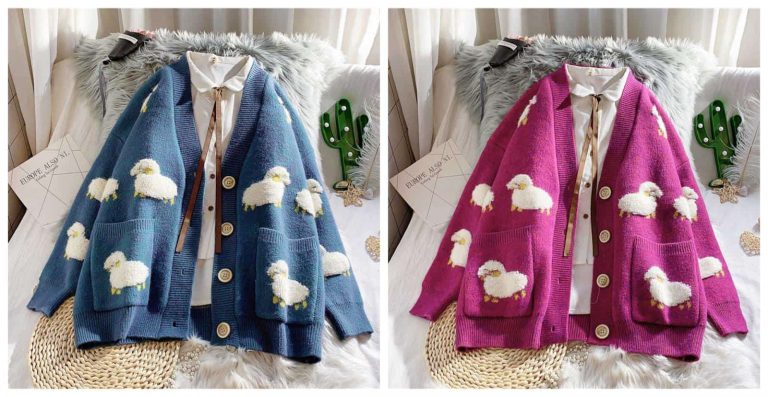Áo Khoác Cardigan Dáng Rộng Thêu Họa Tiết Cừu – phong cách cho các cô nàng vào mùa đông